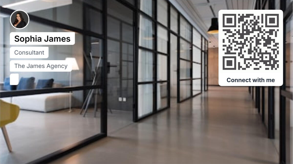 Add a custom virtual background with your QR code and contact details to your online meetings—so you look polished, share your info instantly, and stay top of mind long after the call.